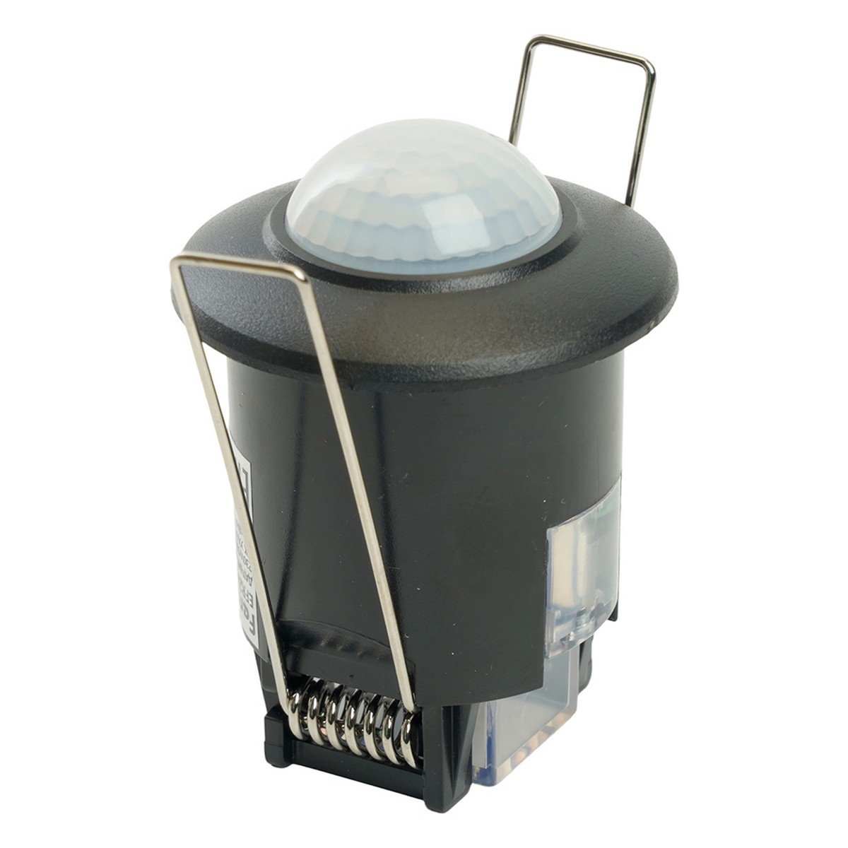 Датчик движения и освещенности FERON SEN50 инфракрасный, встраиваемый, IP20, 230V, 800W, расстояние обнаружения 6м, угол обнаружения 120°(гориз.), 360°(верт.), с регулировкой освещенности и времени задержки, цвет чёрный, 52*52*63мм