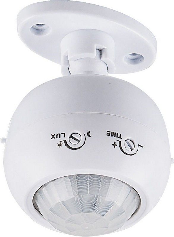 Датчик движения и освещенности FERON SEN16 инфракрасный, накладной, IP20, 230V, 1200W, расстояние обнаружения 8м, угол обнаружения 120°(гориз.), 360°(верт.), с регулировкой освещенности и времени задержки, цвет белый, 45*45*53мм