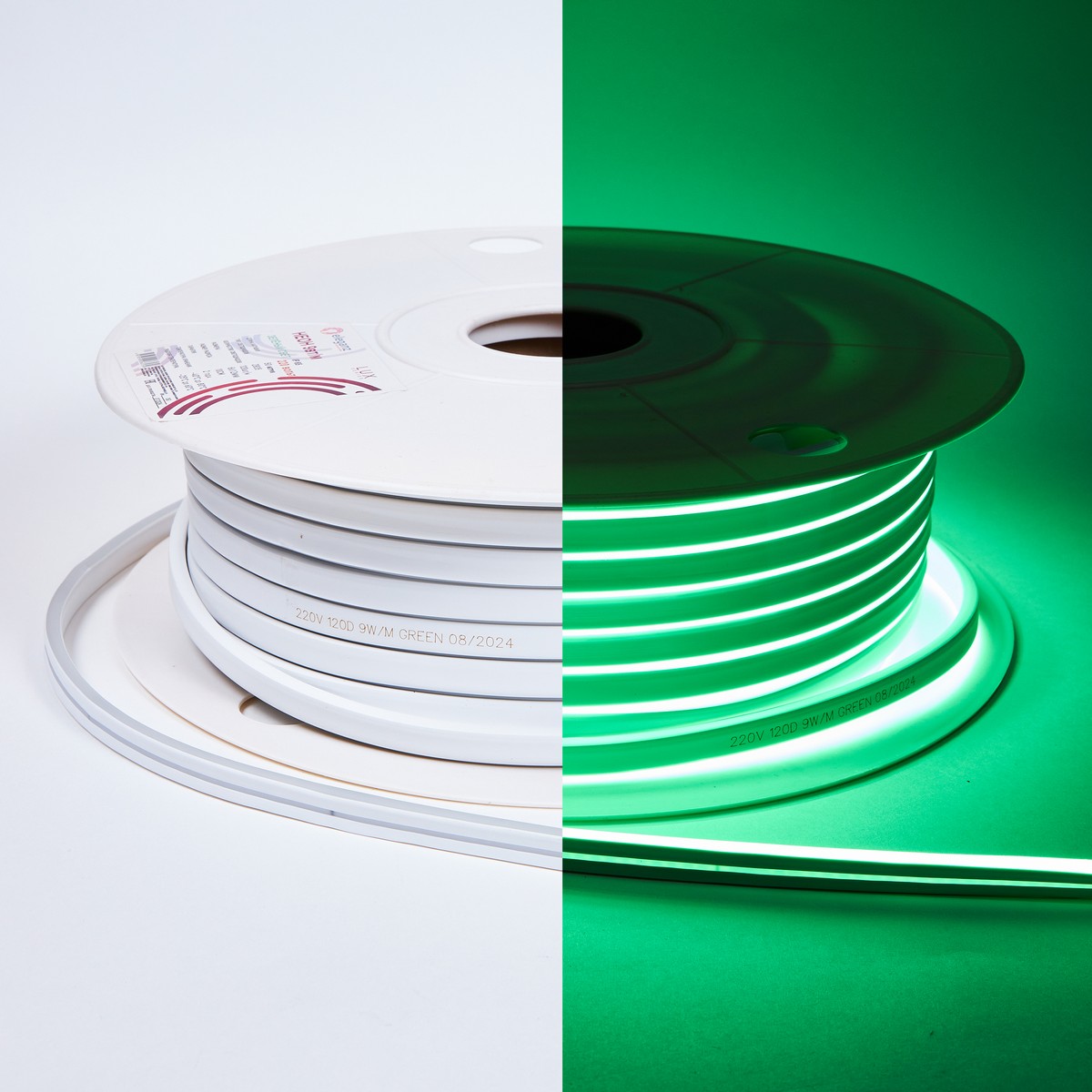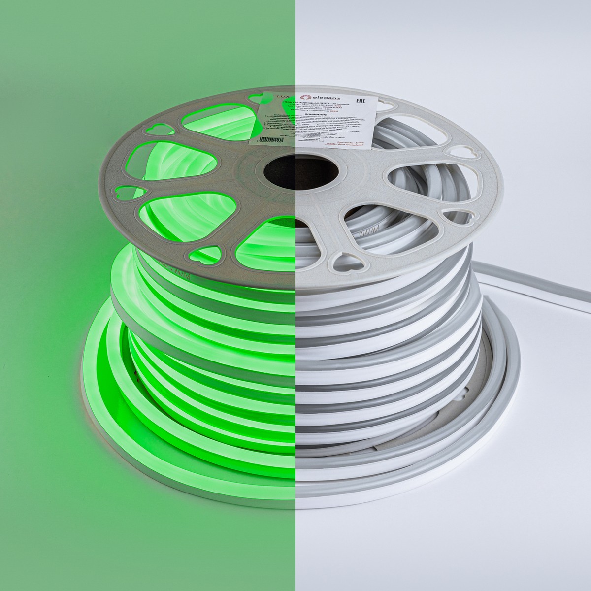 Гибкий неон ELEGANZ 220В 7 Вт/м ЗЕЛЁНЫЙ (EL-NS-7G) предназначен для создания яркой и эффектной подсветки интерьеров и экстерьеров. Степень защиты IP65 позволяет использовать ленту в условиях повышенной влажности, что делает её идеальной для ванных комнат, кухонь и уличных вывесок. Простота монтажа на клеевой основе и электромонтажа через пайку или коннекторы обеспечивает легкость в установке. Доступен к продаже кратно 50 м.