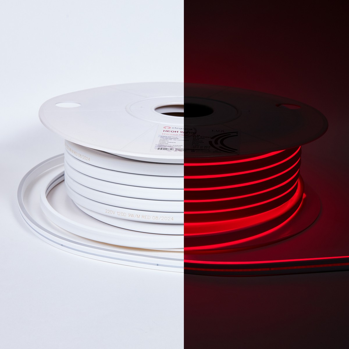 Гибкий неон ELEGANZ 220В 9Вт/м 3000К, IP65, 6x12мм, шаг резки 10см. Идеален для подсветки интерьеров и фасадов, а также для создания рекламных вывесок. Устойчив к высокой влажности и запыленности, подходит для использования на открытых площадках. Легкий монтаж на клеевую основу и простота подключения (пайка или коннекторы). Комплект включает шнур с вилкой. Продажа кратно 50м.