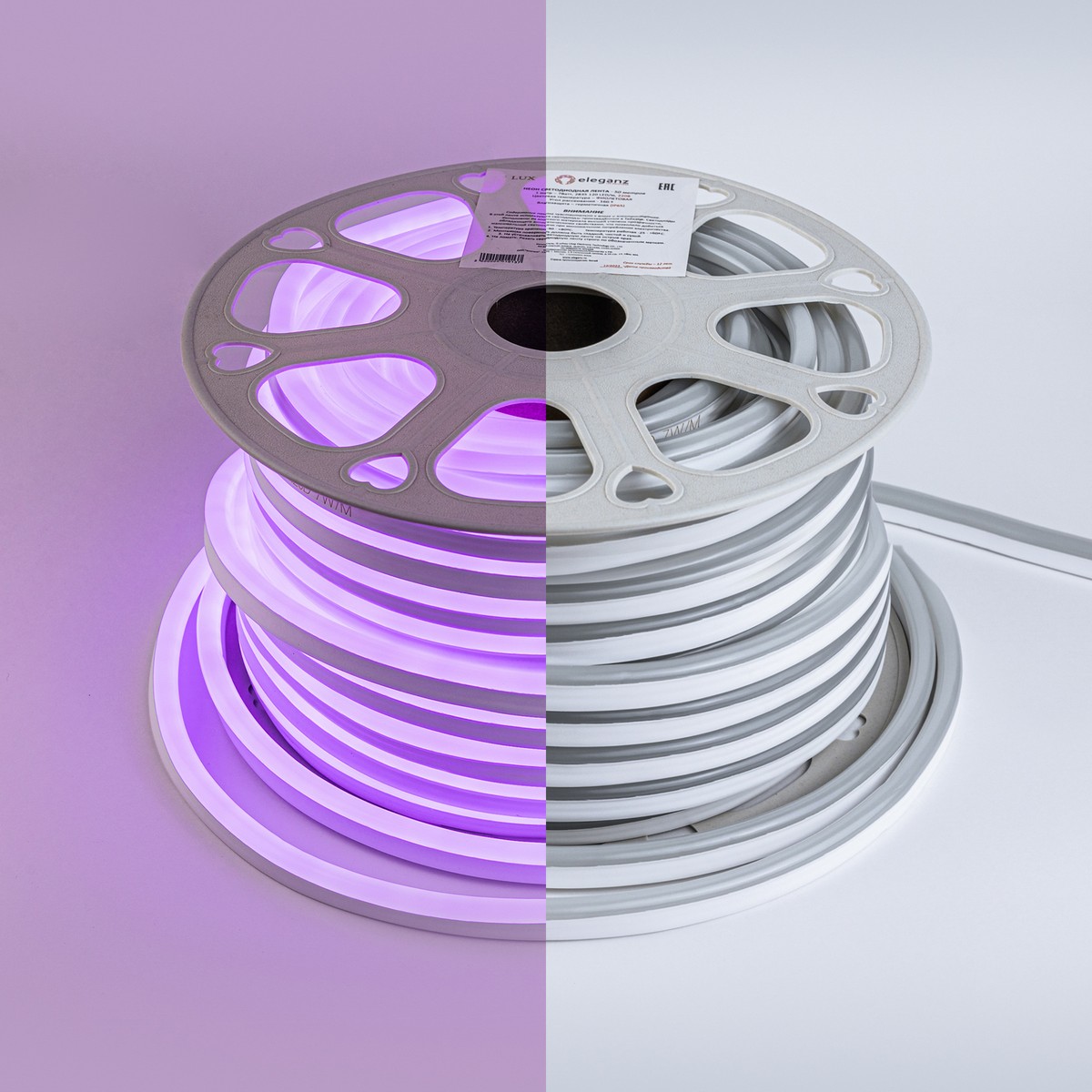 Гибкий неон ELEGANZ 220В 9Вт/м Сиреневый (артикул EL-N220-9V) идеально подходит для создания эффектной подсветки интерьеров, фасадов и рекламных конструкций. С шагом резки 10 см и легким монтажом на клеевой основе, он позволяет реализовать любые дизайнерские идеи. Лента обладает высокой степенью защиты IP65, что обеспечивает ее надежность в условиях повышенной влажности и запыленности. Простота электромонтажа, возможность подключения через коннекторы и клеммные колодки делают использование еще удобнее. Подходит для ванных комнат, кухонь, а также уличных вывесок. Продается кратно 50 м.