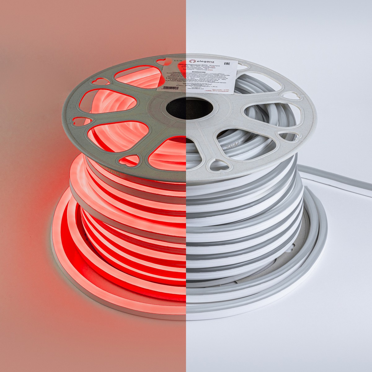 Гибкий неон ELEGANZ 220В 7 Вт/м красного цвета (артикул EL-NS-7R) предназначен для универсального использования в интерьере и экстерьере. Имеет степень защиты IP65, что позволяет использовать его в условиях повышенной влажности. Лента подходит для подсветки потолков, арок, лестниц и витрин, а также для оформления ванных комнат, кухонь и фасадов домов. Простота монтажа на клеевой основе и легкость электрического подключения (пайка или коннекторы) делают установку доступной. Продается кратно 50 метров.