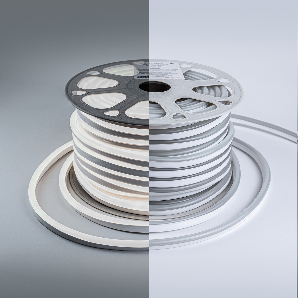 Гибкий неон ELEGANZ 220В 9Вт/м 6000К (артикул EL-N220-9W) – идеальное решение для создания стильной подсветки в интерьере и экстерьере. Лента имеет компактные размеры 6x12 мм и шаг резки 10 см, что обеспечивает гибкость в дизайне и монтаже. Подходит для освещения домов, кафе, магазинов, а также для оформления мебели и рекламных конструкций.