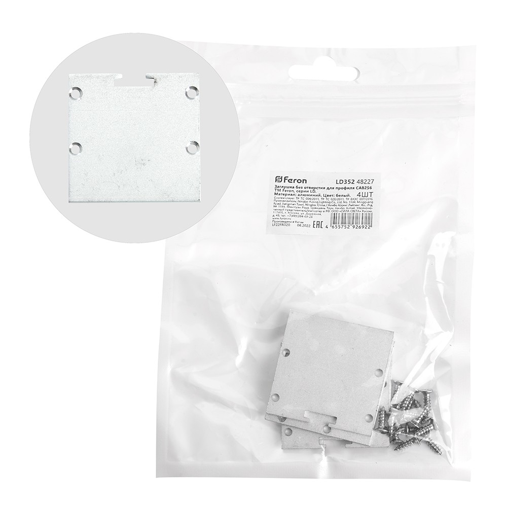 Заглушка без отверстия LD352 для профиля CAB256 от Feron — идеальное решение для завершения вашего освещения. В комплекте 4 шт, цвет серебро, размеры 39*2*39 мм.