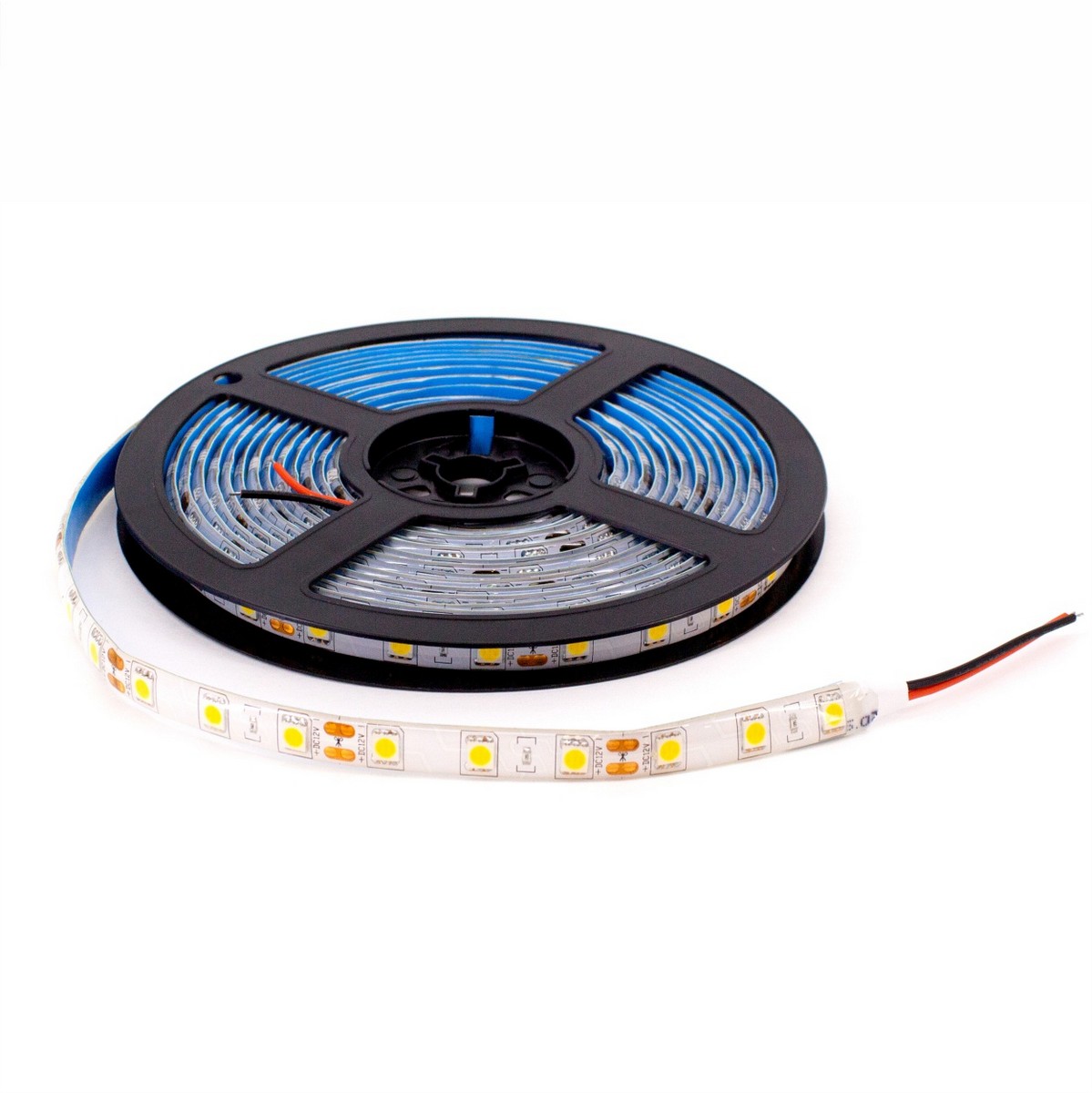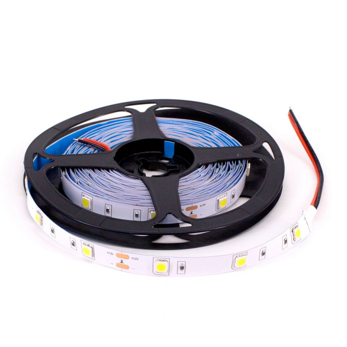 Конструкция: Лента светодиодная 5м на катушке. 60 диодов размером 5050 на метр. IP20. C липким слоем на оборотной стороне. Коннектор в комплекте.