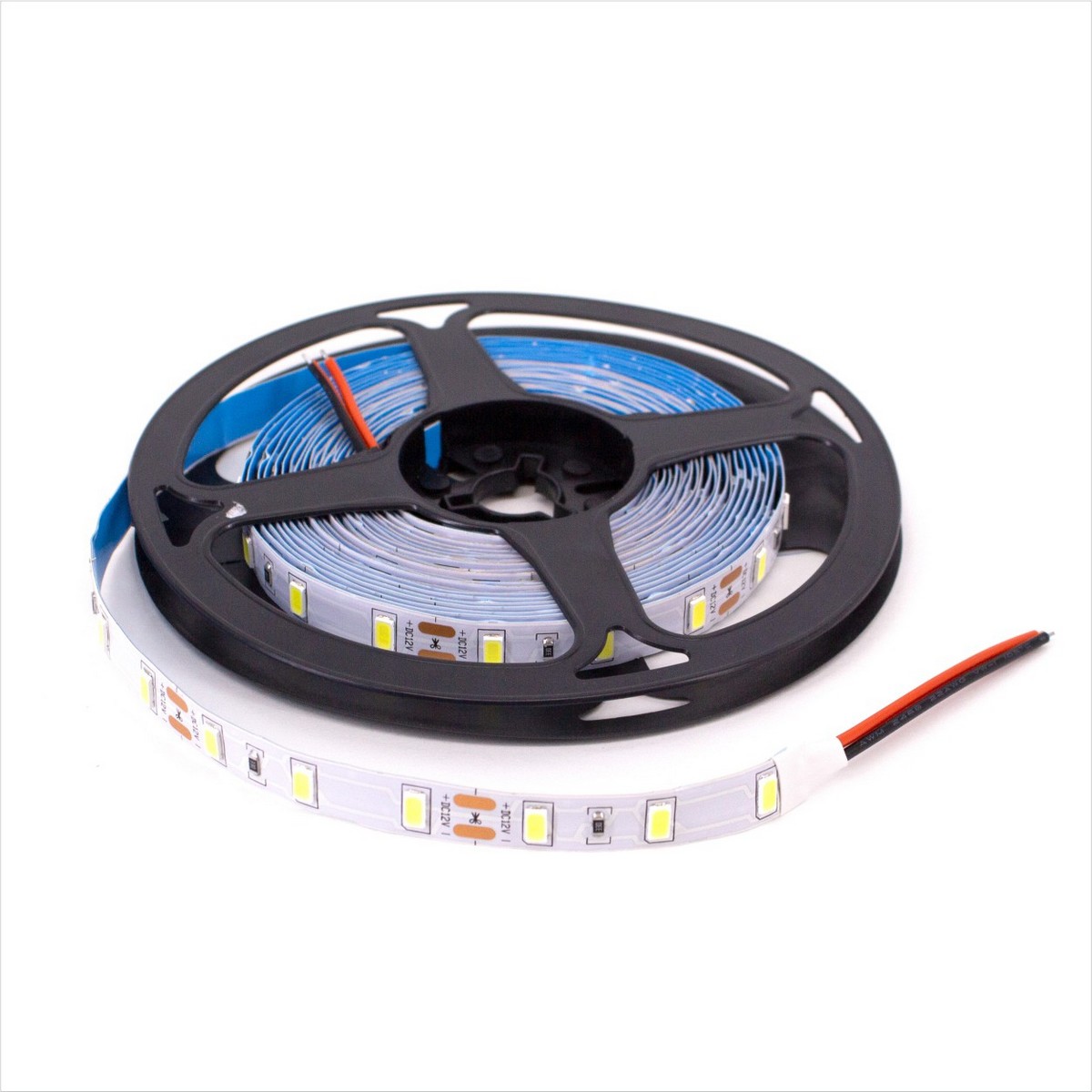 Конструкция: Лента светодиодная 5м на катушке. 60 диодов размером 5630 на метр. IP20. C липким слоем на оборотной стороне. Коннектор в комплекте.
