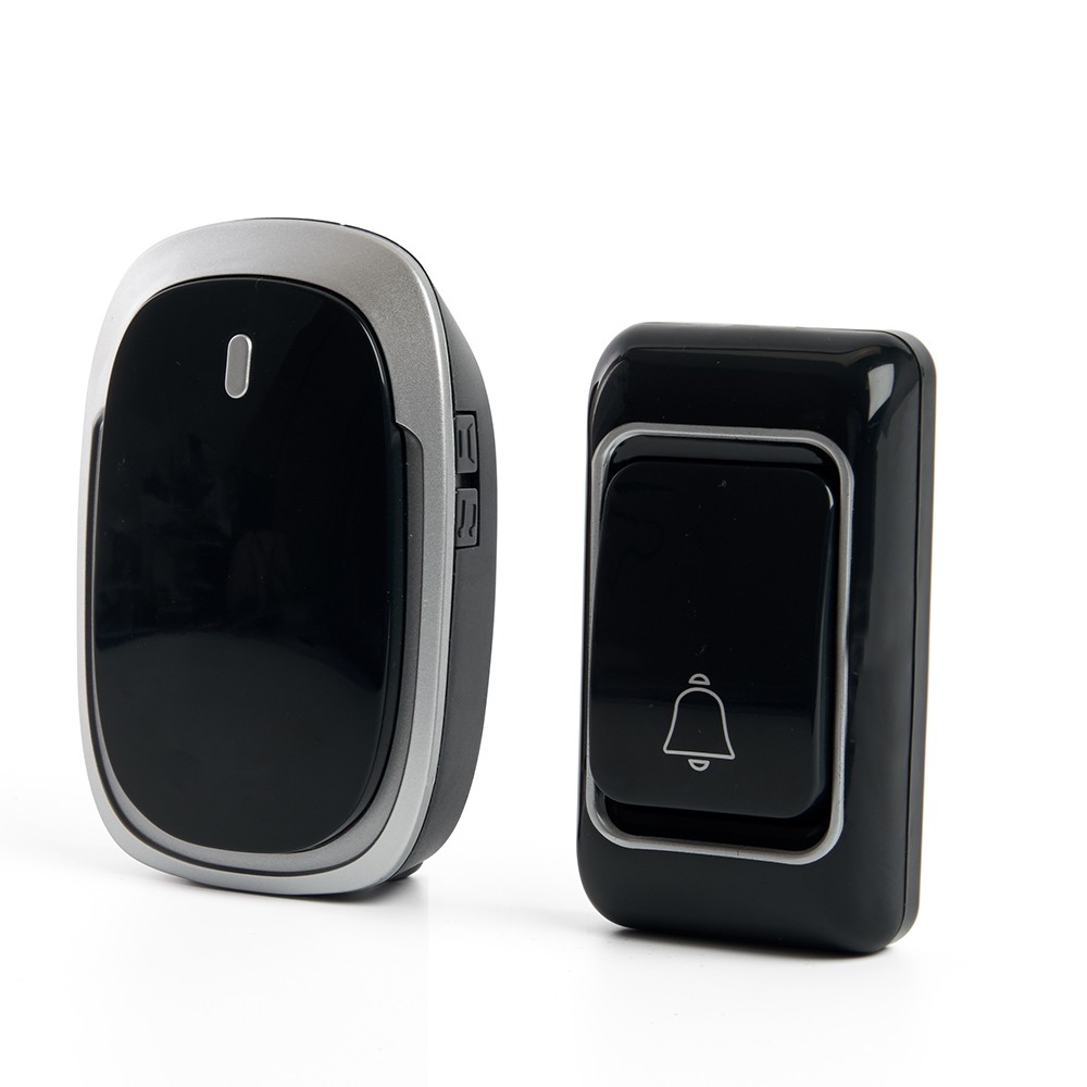 Звонок электрический дверной беспроводной FERON E-383, 38 мелодий, дальность действия 100м, цвет чёрный/серебро, регулировка громкости - есть, шифрование сигнала - есть; БАЗА: 3*1,5V/AAA, 94*62*27 мм, КНОПКА: IP44, 12V 23A*1 (в комплекте) , раб.t -20..+60°С , размер кнопки 80*23*45мм