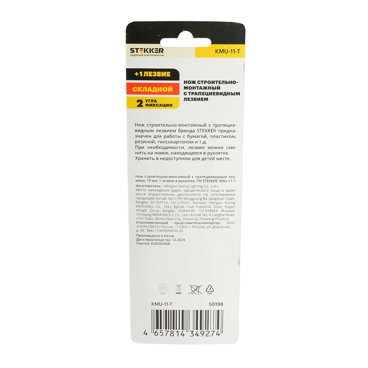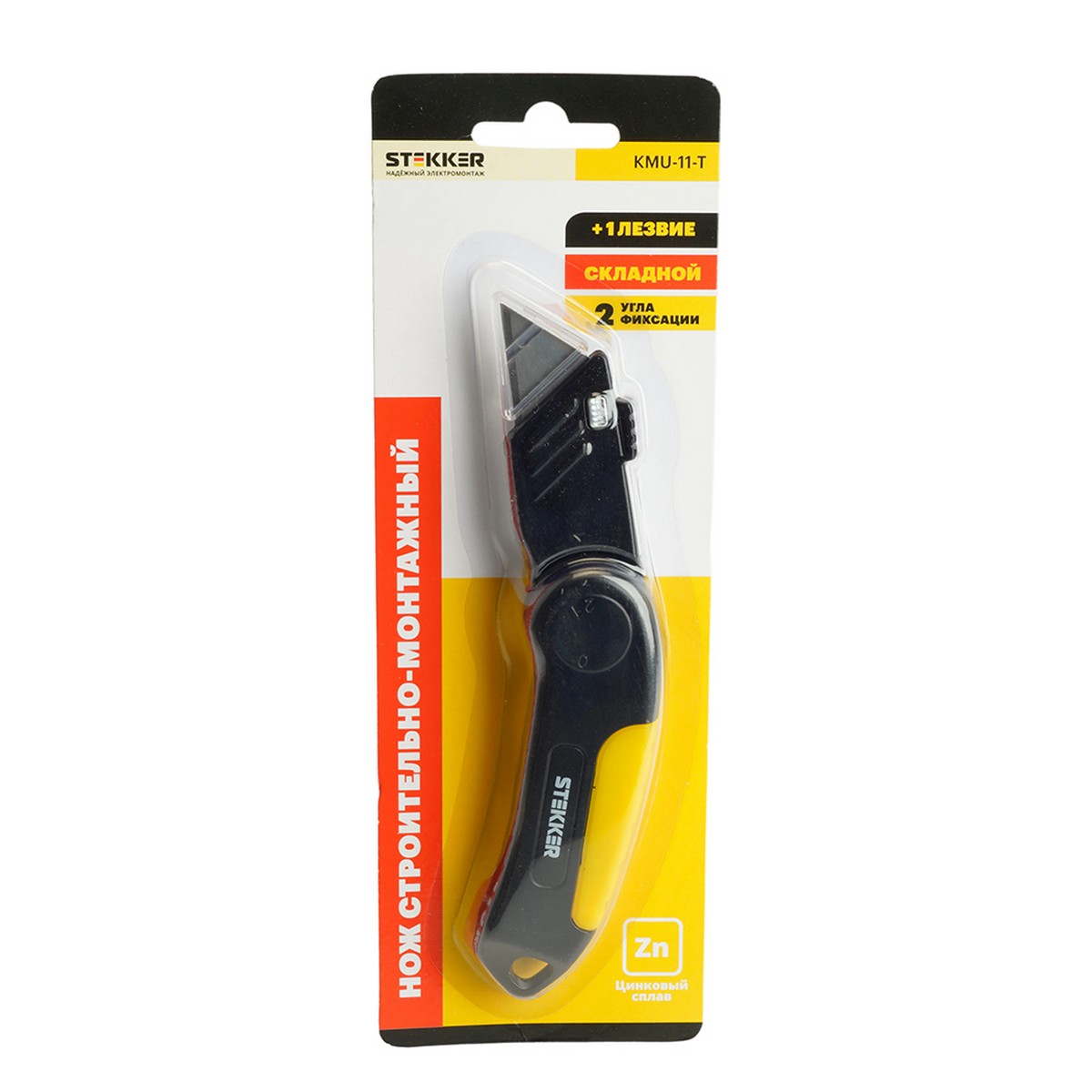 KMU-11-T Нож строительно-монтажный с трапециевидным лезвием, 19 мм, 1 лезвие в рукоятке, STEKKER
