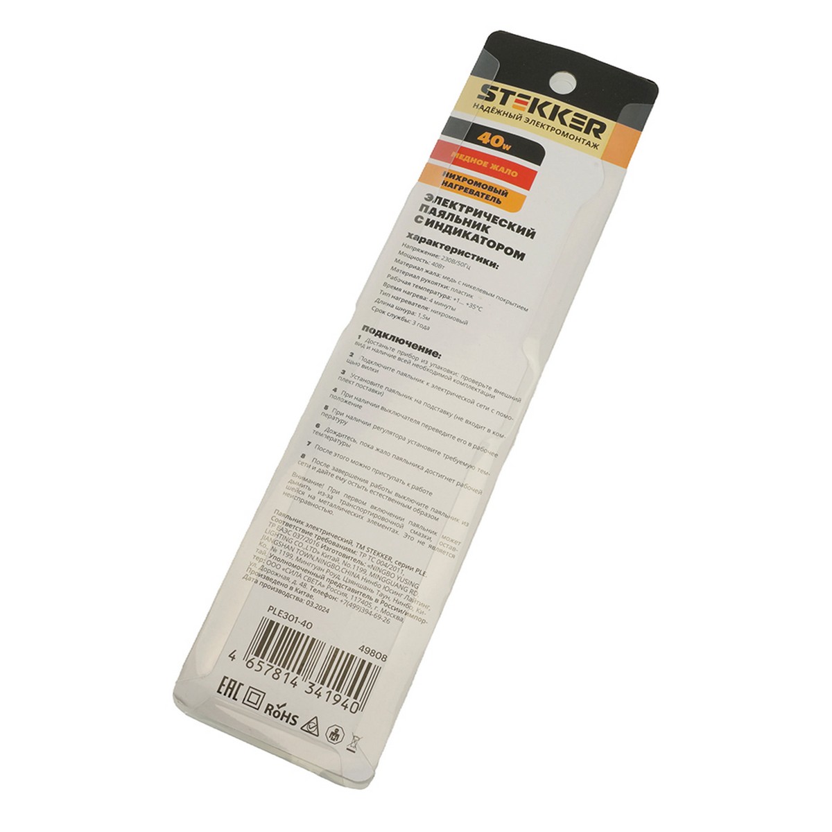 Паяльник с индикатором 40W STEKKER PLE301-40 49808 по цене 283 руб. с фотографией и техническими характеристиками. Для покупки товара нажмите кнопку "Купить" и перейдите в корзину или позвоните по телефону 8 (495) 585 32 60 или 8 (800) 222 23 53.