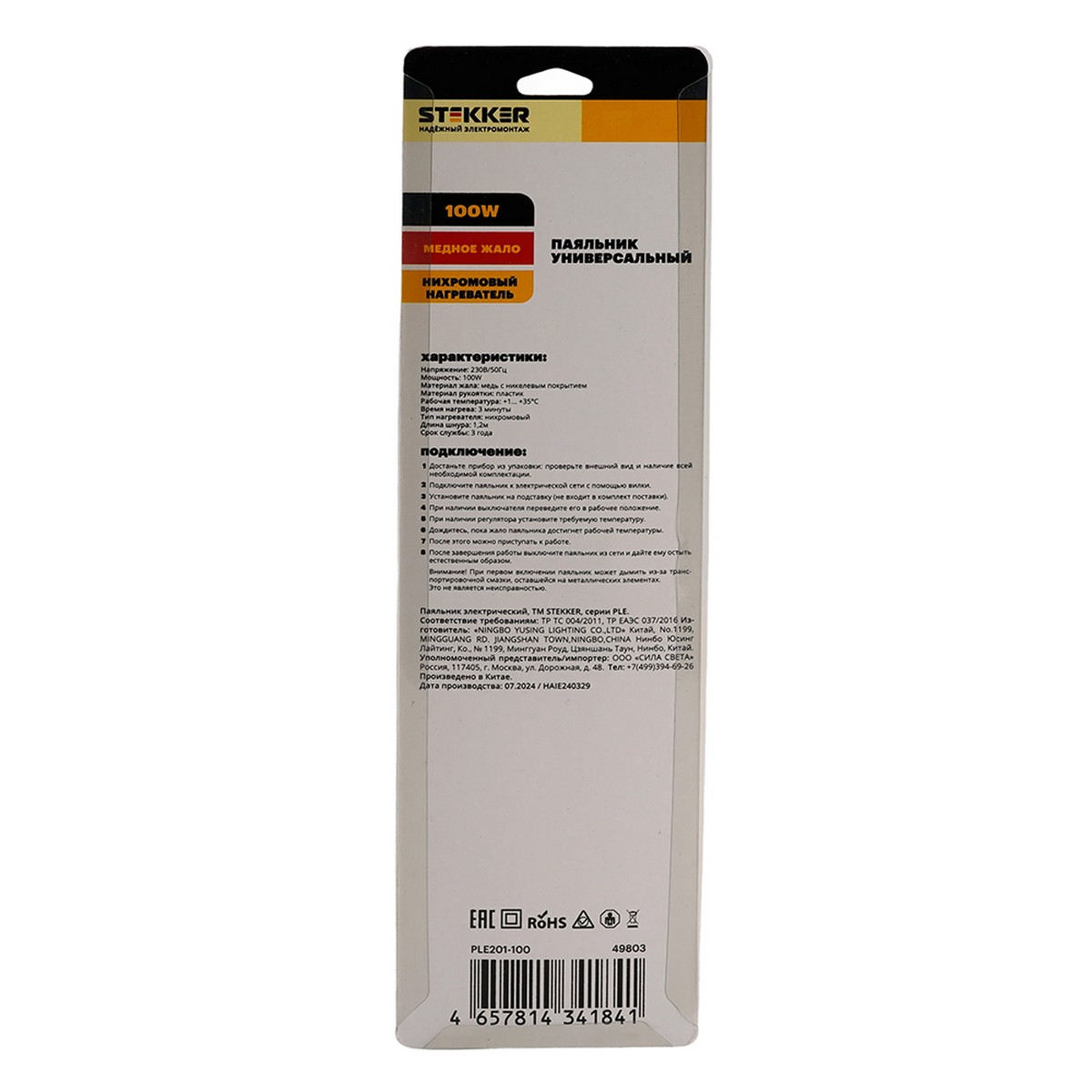 Паяльник STEKKER PLE201- 100 100W с кнопкой вкл., нихромовый нагреватель, долговечное жало, 230В 49803 по цене 563 руб. с фотографией и техническими характеристиками. Для покупки товара нажмите кнопку "Купить" и перейдите в корзину или позвоните по телефону 8 (495) 585 32 60 или 8 (800) 222 23 53.