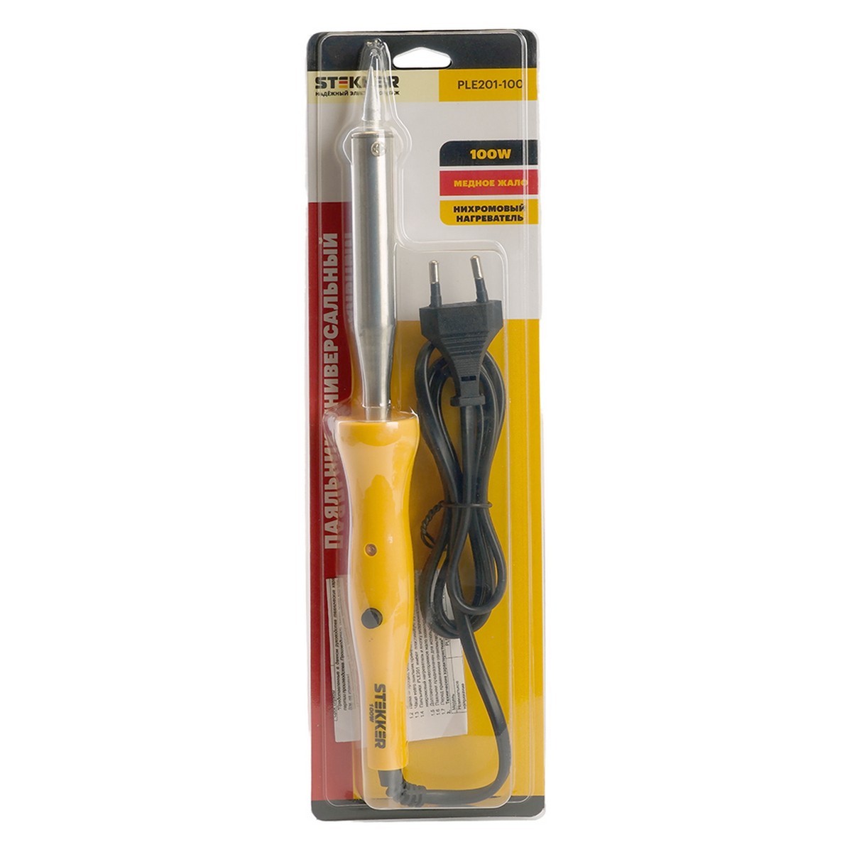 PLE201- 100 Паяльник 100W с кнопкой вкл., нихромовый нагреватель, долговечное жало, 230В
