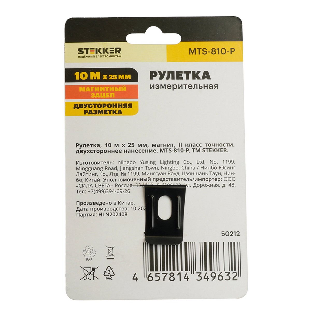 MTS-810-P Рулетка, 10 м х 25 мм, магнит, II класс точности, двухстороннее нанесение, STEKKER