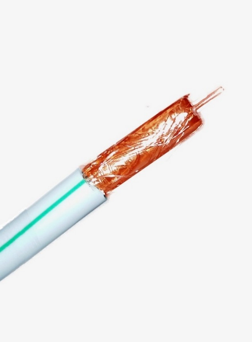 RG 6 стандартный,с медным центральным проводником. Применяется для передачи электрического тока в телевизионные устройства.