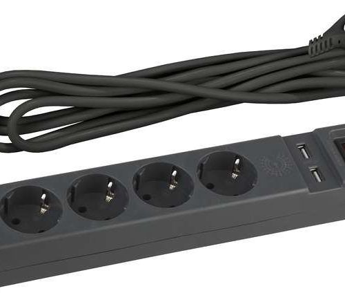 Удлинитель 5 гнезд 3 метра с заземлением 2 USB SE Unica черный ST945U3B