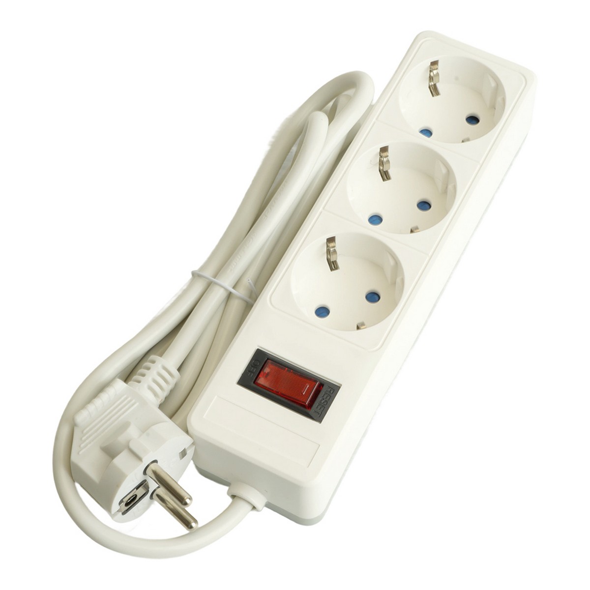 HM20-31-02 Сетевой фильтр 3-местный с/з 3x1мм2, 1,8 м, 230В, 13А, серия Optima, белый