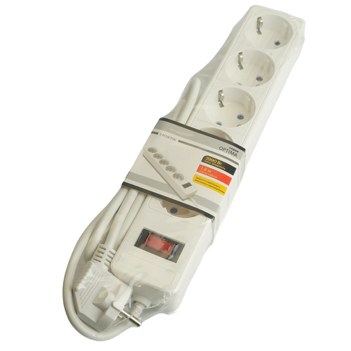 HM20-41-02 Сетевой фильтр 4-местный с/з 3x1мм2, 1,8 м, 230В, 13А, серия Optima, белый