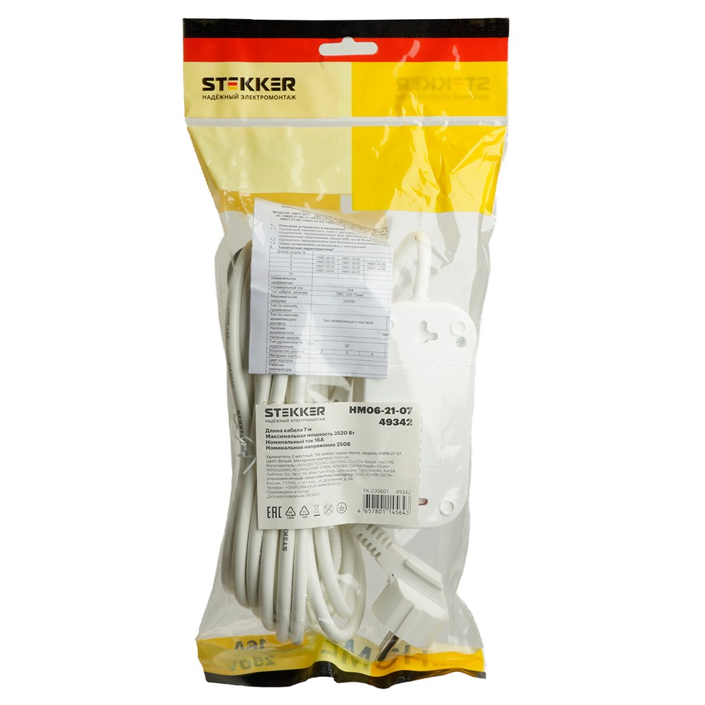 Удлинитель STEKKER двухместный с/з HM06-21-07 7м Home (У10-001) белый 49342 по цене 535 руб. с фотографией и техническими характеристиками. Для покупки товара нажмите кнопку "Купить" и перейдите в корзину или позвоните по телефону 8 (495) 585 32 60 или 8 (800) 222 23 53.