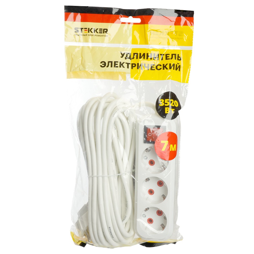 Удлинитель STEKKER трехместный с/з с выключ. HM07-31-07 7м Home (У16А-002) белый 49356 по цене 677 руб. с фотографией и техническими характеристиками. Для покупки товара нажмите кнопку "Купить" и перейдите в корзину или позвоните по телефону 8 (495) 585 32 60 или 8 (800) 222 23 53.