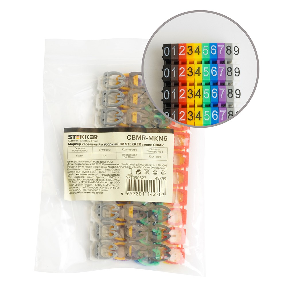 Маркер кабельный наборный "0-9" STEKKER 6 мм2 CBMR-MKN6 (100шт/упак - 10 отрез. по 10 шт.) 49399 по цене 177 руб. с фотографией и техническими характеристиками. Для покупки товара нажмите кнопку "Купить" и перейдите в корзину или позвоните по телефону 8 (495) 585 32 60 или 8 (800) 222 23 53.