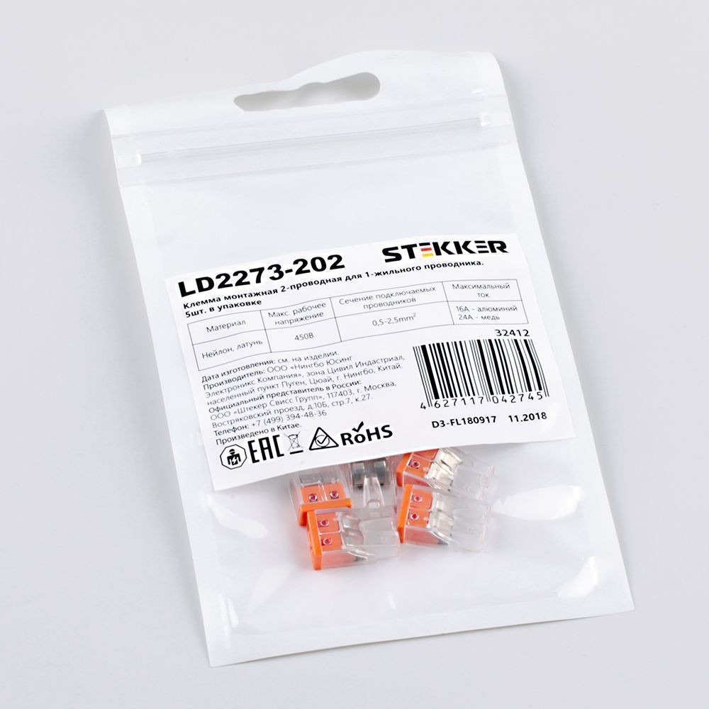 Клемма монтажная 2-проводная STEKKER для 1-жильного проводника, LD2273-202 (5 штук в упаковке) 32412 по цене 44 руб. с фотографией и техническими характеристиками. Для покупки товара нажмите кнопку "Купить" и перейдите в корзину или позвоните по телефону 8 (495) 585 32 60 или 8 (800) 222 23 53.