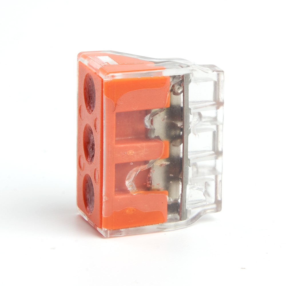 Клемма пружинная компактная STEKKER LD773-173-1, 3-проводная 2,5 - 6 мм2, 450В, 41А, с пастой, материал изделия поликарбонат, латунь, сталь. Тип провода одножильный, материал провода медь, температура окружающей среды - 25...+40°С