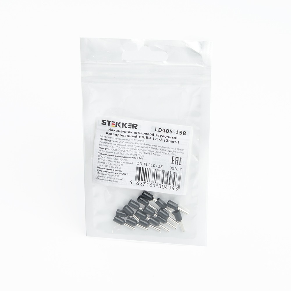 Наконечник Штыревой Втулочный Изолированный STEKKER; 1,5 - 8 мм-; , латунь, полипропилен (PP), черный