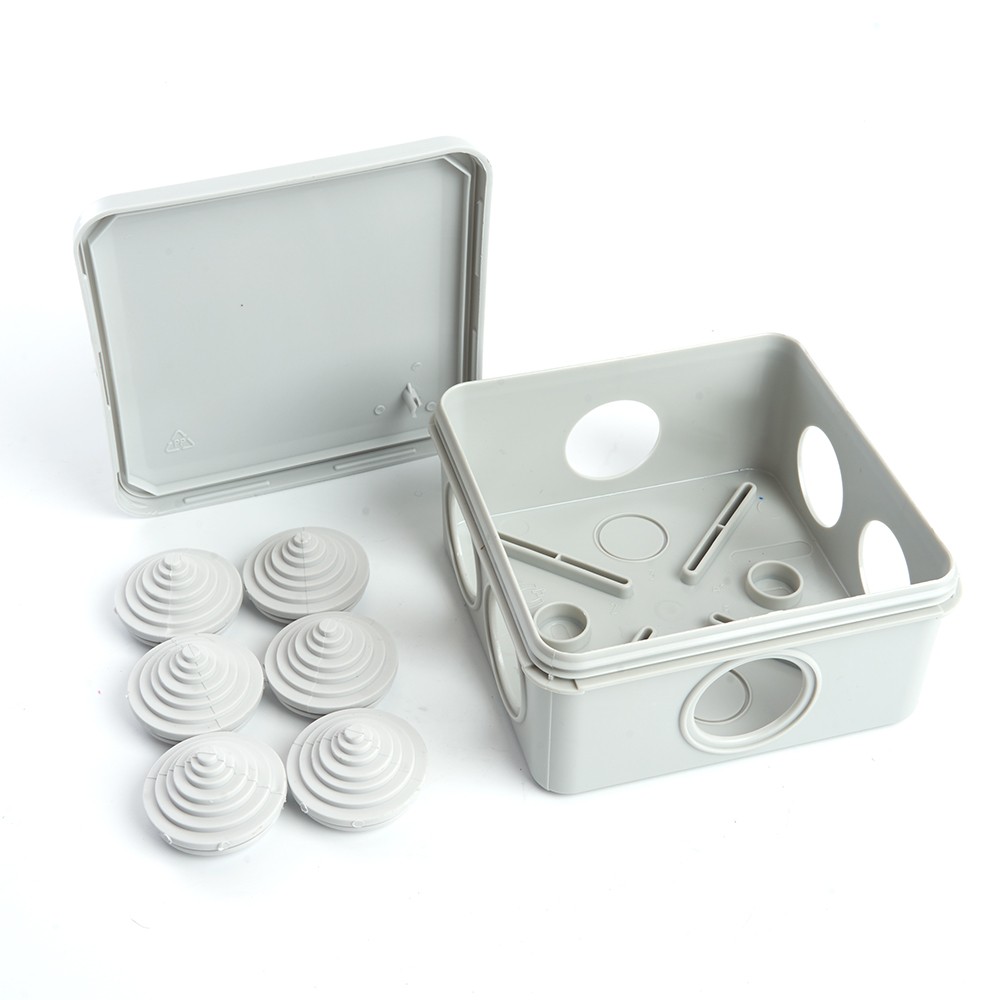 Распределительная коробка STEKKER EBX10-36-55, количество вводов: 6, полистирол, полипропилен, цвет светло-серый, размер 100*100*50мм.
