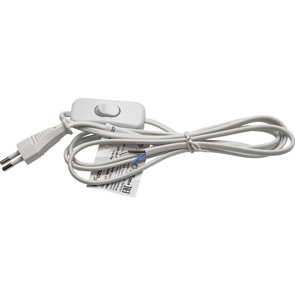Сетевой шнур (с выключателем) белый, 2м, DM107, артикул 41150