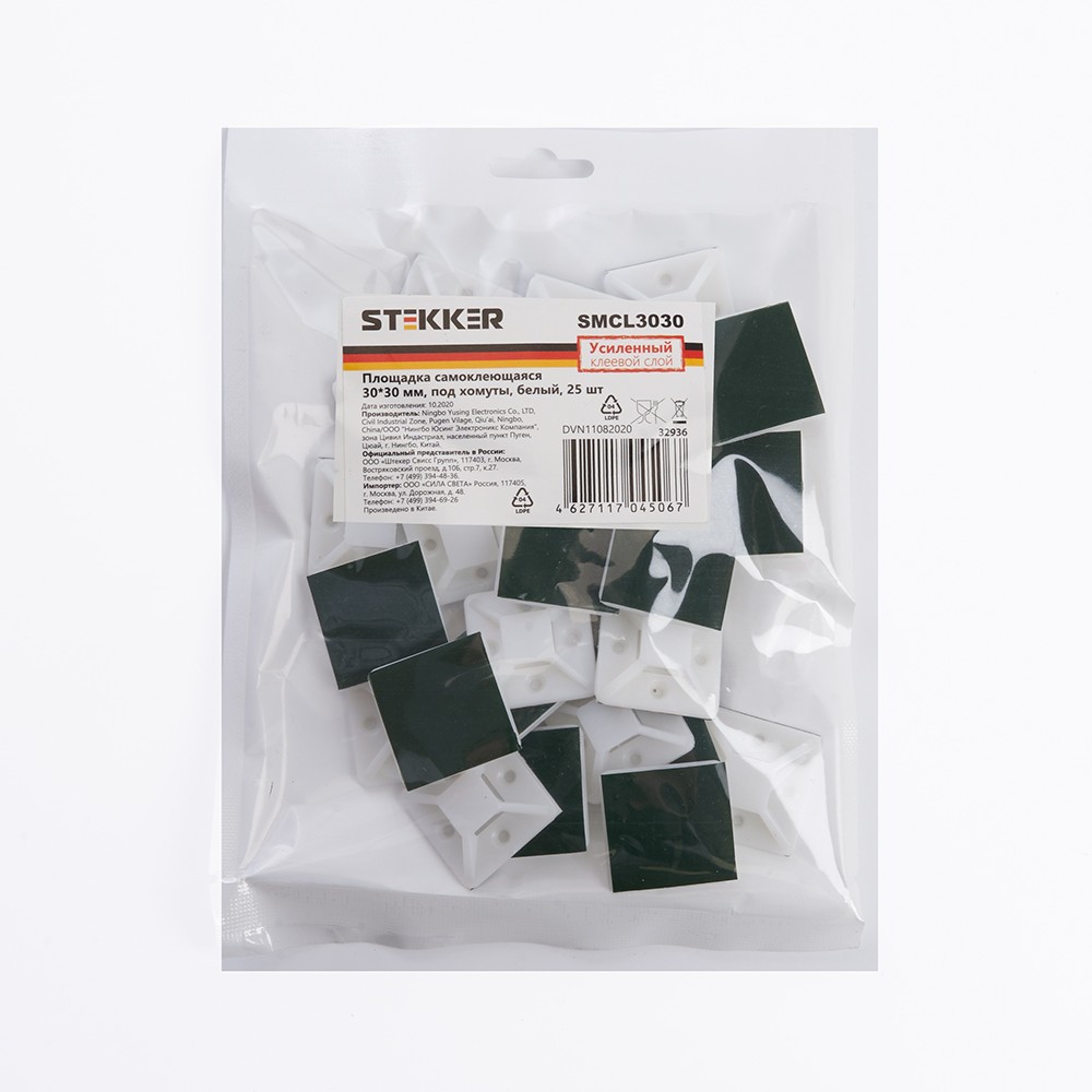 Площадка под хомут STEKKER SMCL3030 самоклеющаяся, цвет белый, размер 30*30мм., материал: нейлон . Максимальный размер хомута: 4,7мм., 25 шт в упаковке.
