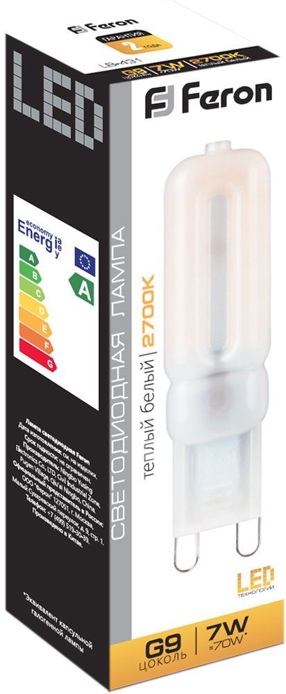 Лампа светодиодная Feron LB-431 G9 7W 2700K 230V 25755 по цене 142 руб. с фотографией и техническими характеристиками. Для покупки товара нажмите кнопку "Купить" и перейдите в корзину или позвоните по телефону 8 (495) 585 32 60 или 8 (800) 222 23 53.