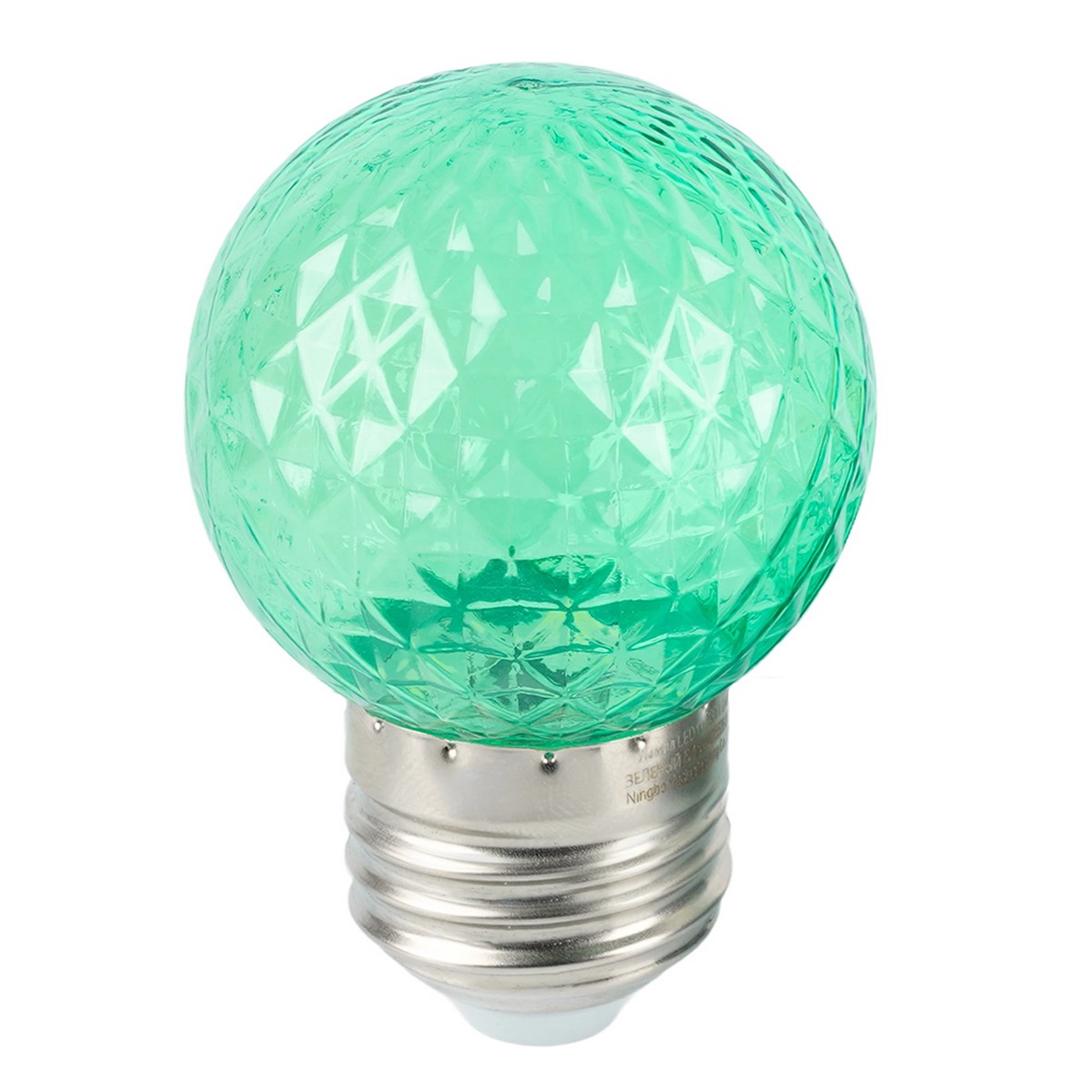 Лампа светодиодная FERON LB-385, G45 (шар), 1W 230V E27 (зеленый), рассеиватель прозрачный зеленый, угол рассеивания 270°, корпус пластик, 68*45мм