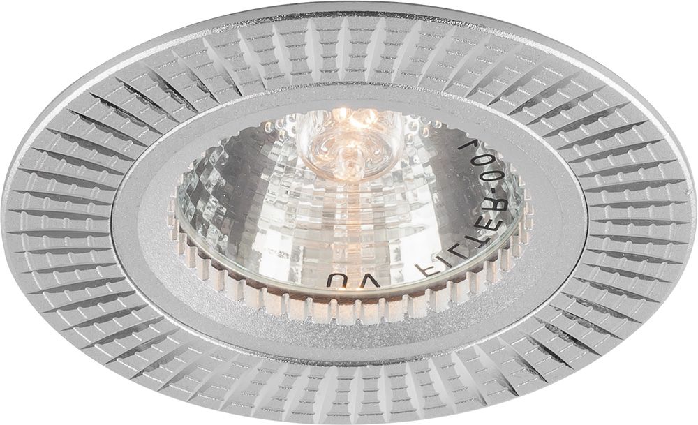 Светильник потолочный встраиваемый (ИВО) FERON GS-M369, под лампу MR16 G5.3, серебро, круг, 80*80*25 мм, монтажный диаметр 57мм,  корпус металл, неповоротный