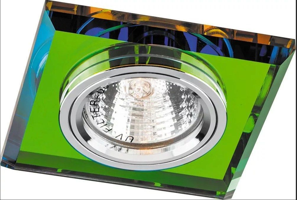 Светильник потолочный встраиваемый FERON 8170-2, декоративный MR16 G5.3, многоцветный, квадрат, 90*90*23 мм, монтажн.отв. 60мм,  корпус стекло, одноцветный