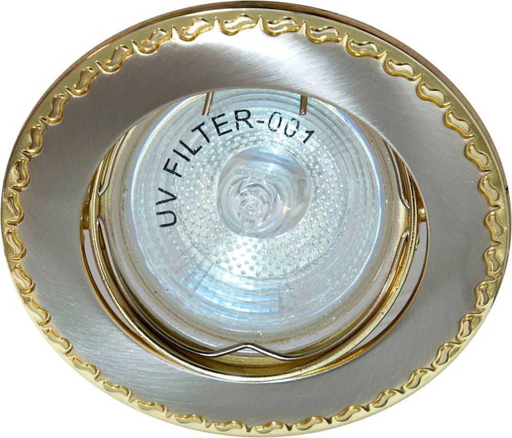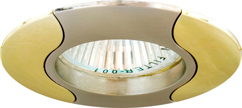 Светильник потолочный встраиваемый (ИВО) FERON 301T, под лампу MR16 G5.3, золото-хром, круг, 80*80*20 мм, монтажн.отв. 70мм,  поворотный