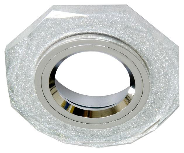Светильник потолочный встраиваемый FERON 8020-2, декоративный MR16 G5.3, серебро, 8-ми гранник, 90*90*25 мм, монтажн.отв. 55мм,  одноцветный