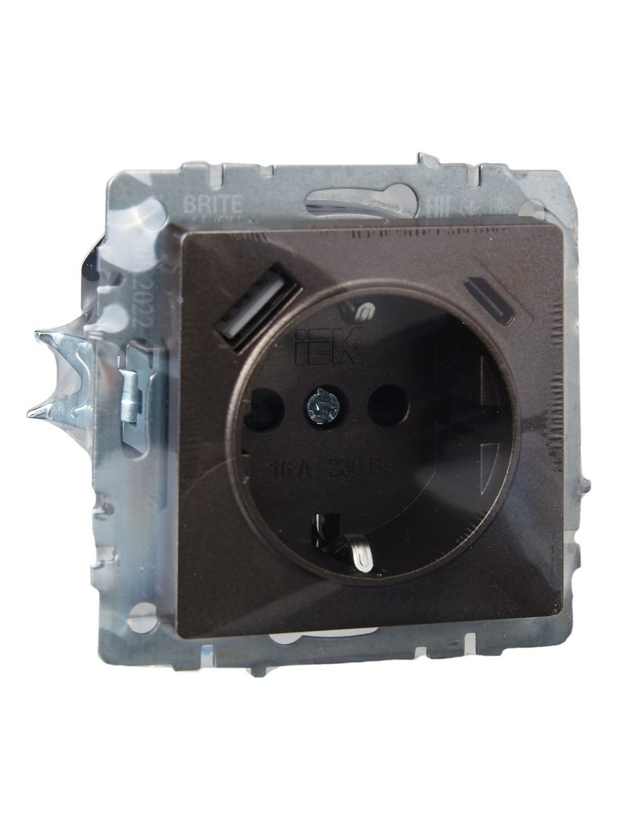Розетка IEK BRITE с с/з и шторками 16А с USB A+C 18Вт РЮш11-1-БрТБ бронза BR-R14-16-U22-018-K45 по цене 4 112 руб. с фотографией и техническими характеристиками. Для покупки товара нажмите кнопку "Купить" и перейдите в корзину или позвоните по телефону 8 (495) 585 32 60 или 8 (800) 222 23 53.