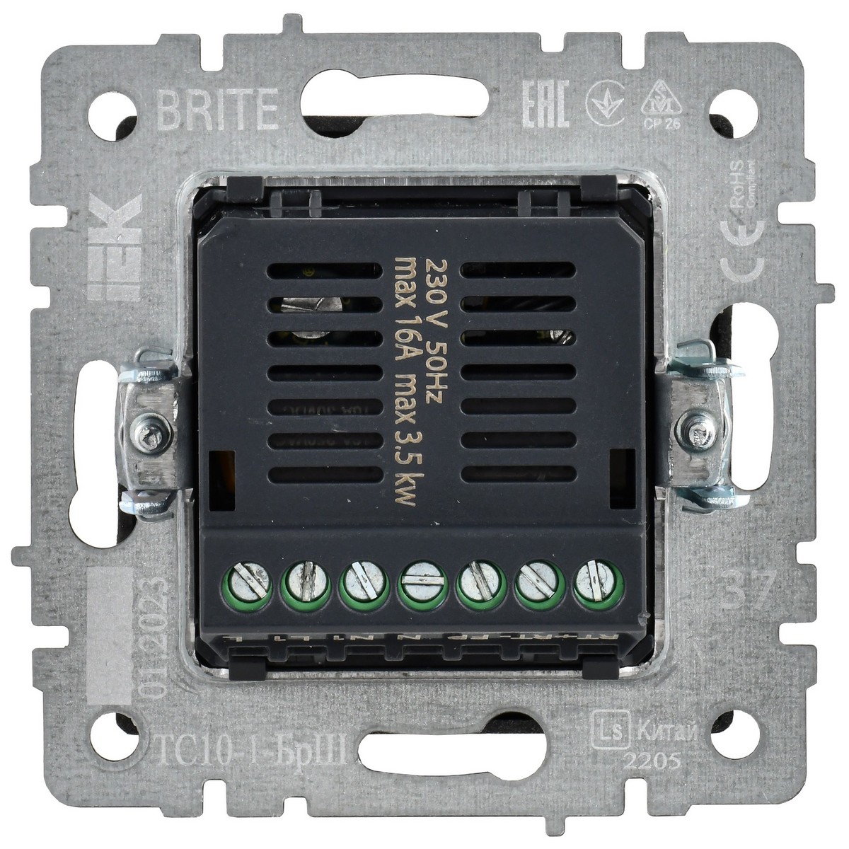 Термостат IEK BRITE BASE Шампань электронный с инд. ТС10-1-БрШ (терморегулятор) BR-RT11-K37 по цене 5 924 руб. с фотографией и техническими характеристиками. Для покупки товара нажмите кнопку "Купить" и перейдите в корзину или позвоните по телефону 8 (495) 585 32 60 или 8 (800) 222 23 53.