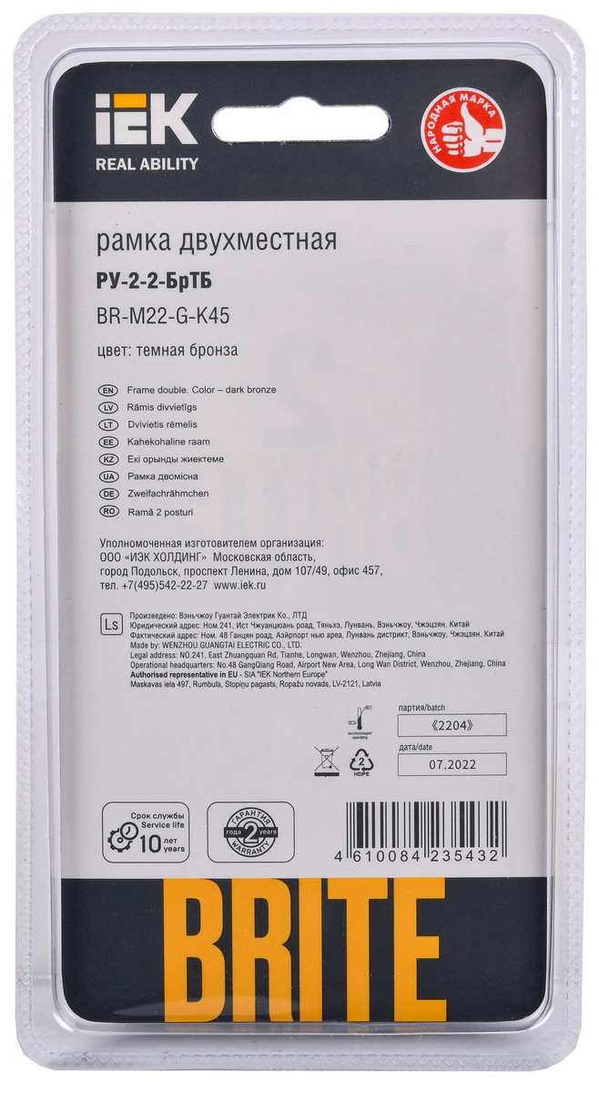 Рамка IEK BRITE 2-местная РУ-2-2-БрТБ стекло бронза BR-M22-G-K45 по цене 1 257 руб. с фотографией и техническими характеристиками. Для покупки товара нажмите кнопку "Купить" и перейдите в корзину или позвоните по телефону 8 (495) 585 32 60 или 8 (800) 222 23 53.