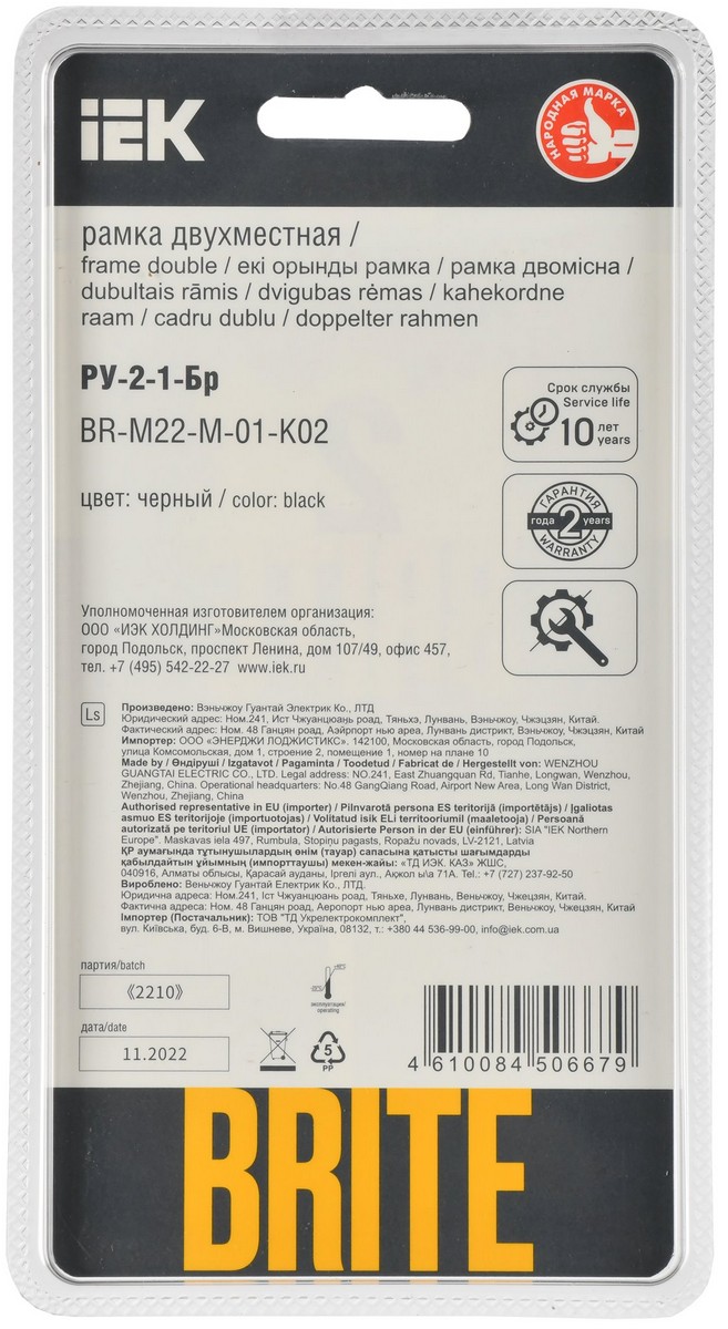 Рамка IEK BRITE DECOR (артикул BR-M22-M-01-K02) представляет собой стильное и функциональное решение для электроустановки. Изготавливаемая из черного металла, она обладает скругленными уголками, что придает ей современный и элегантный вид. Серия "BRITE" от производителя IEK фокусируется на высоком качестве используемых материалов, обеспечивая надежность и долговечность в эксплуатации. Рамка идеально подходит как для жилых, так и для коммерческих помещений, позволяя создавать гармоничные интерьеры в едином стиле. Широкая цветовая палитра и разнообразие форматов обеспечивают возможность выбора оптимального решения для каждого проекта. Оптимальное сочетание цены и качества делает эту рамку привлекательной для дизайнеров и строителей.