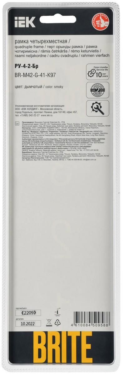 Рамка IEK BRITE DECOR Дымчатый матовый стекло скругл.угол 4-м РУ-4-2-Бр RE BR-M42-G-41-K97 по цене 3 740 руб. с фотографией и техническими характеристиками. Для покупки товара нажмите кнопку "Купить" и перейдите в корзину или позвоните по телефону 8 (495) 585 32 60 или 8 (800) 222 23 53.