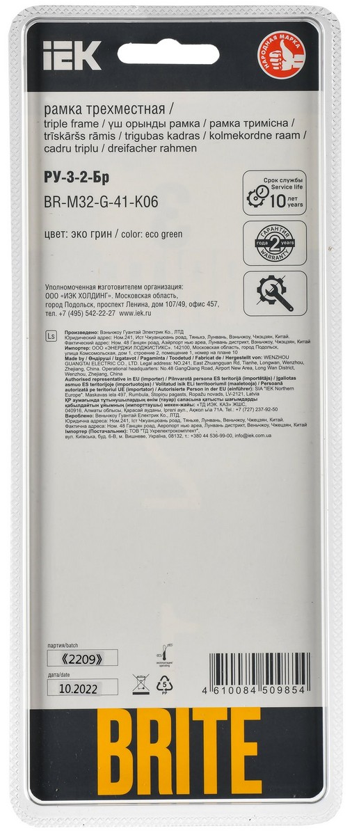 Рамка IEK BRITE DECOR Эко грин матовый стекло скругл.угол 3-мест. РУ-3-2-Бр RE BR-M32-G-41-K06 по цене 2 791 руб. с фотографией и техническими характеристиками. Для покупки товара нажмите кнопку "Купить" и перейдите в корзину или позвоните по телефону 8 (495) 585 32 60 или 8 (800) 222 23 53.