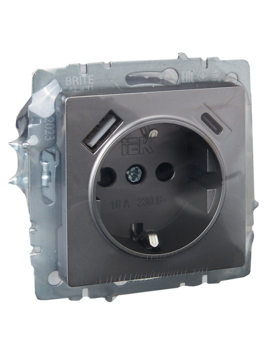 Розетка IEK BRITE с с/з и шторками 16А с USB A+C 18Вт РЮш11-1-БрС сталь BR-R14-16-U22-018-K46 по цене 4 112 руб. с фотографией и техническими характеристиками. Для покупки товара нажмите кнопку "Купить" и перейдите в корзину или позвоните по телефону 8 (495) 585 32 60 или 8 (800) 222 23 53.