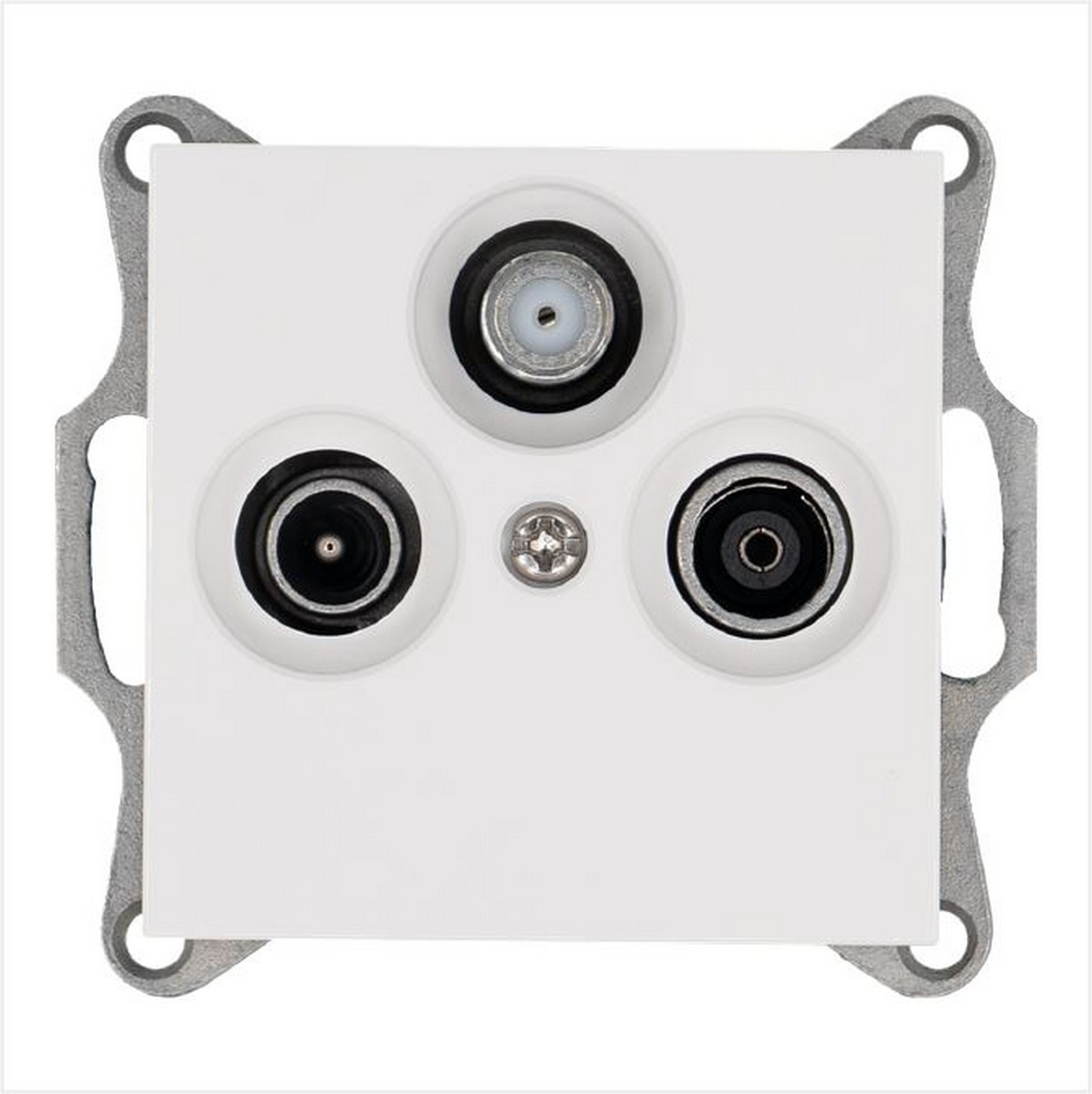 Оконечная розетка предназначена для подключения радио - и телевизионных приемников, которые используется для приема эфирных или спутниковых, аналоговых или цифровых сигналов. Рабочая частота SAT 950 - 2400 МГц, TV 5 - 862 МГц, FM 88 - 125 МГц. Затухание на отводе (дБ) SAT - 1, TV - 1, FM - 10