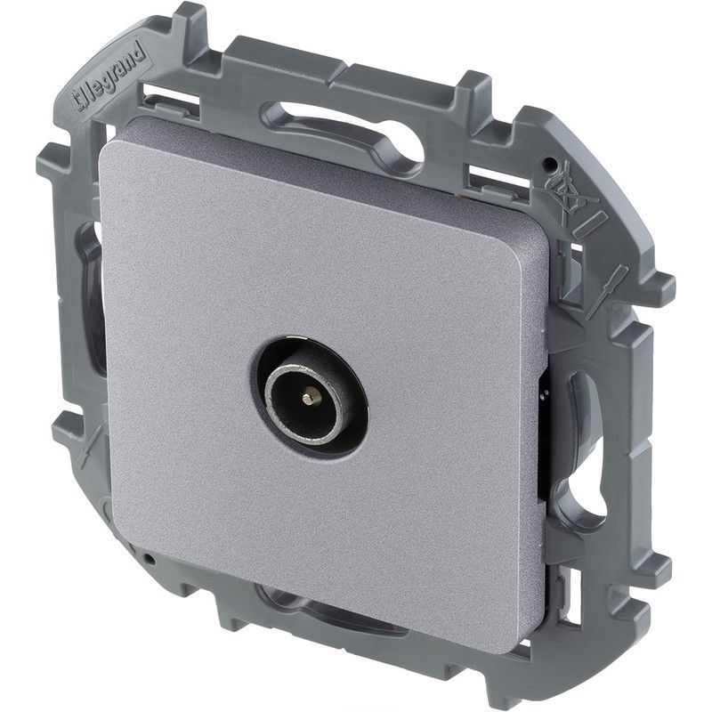 Розетка телевизионная Legrand Inspiria для скрытого монтажа, для схемы "звезда", 1 дБ 4-2400 МГц, поддержка обратного питания для активных антенн до 500мА, цвет "Алюминий".