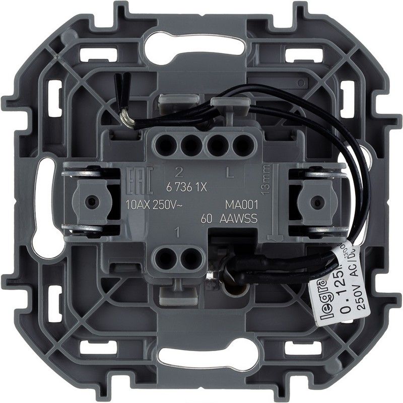 Выключатель одноклавишный с подсветкой/индикацией Legrand Inspiria для скрытого монтажа, цвет "Белый", номинальный ток 10 А, напряжение ~250 В.
