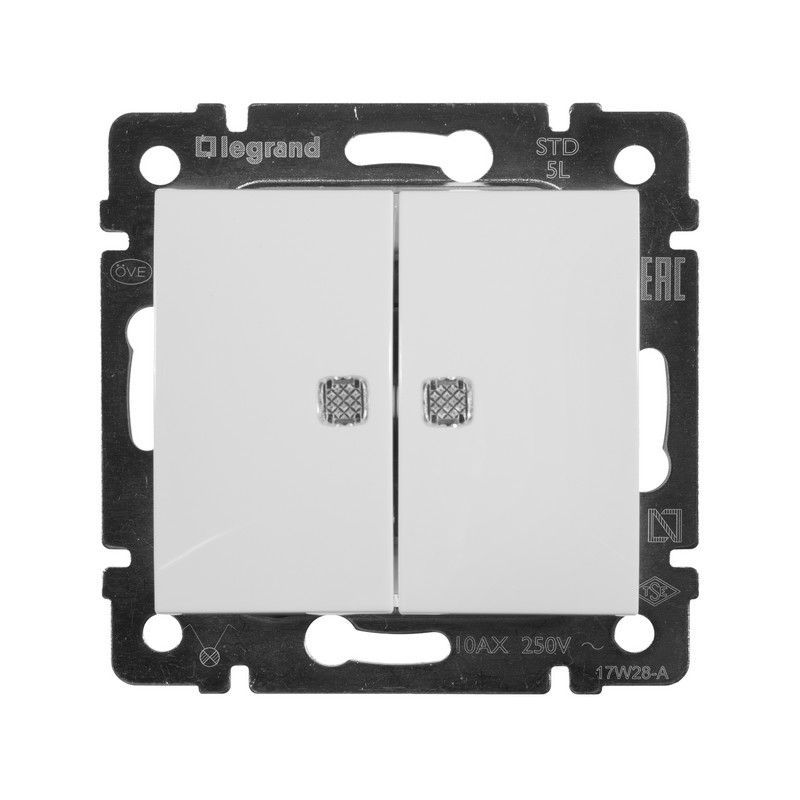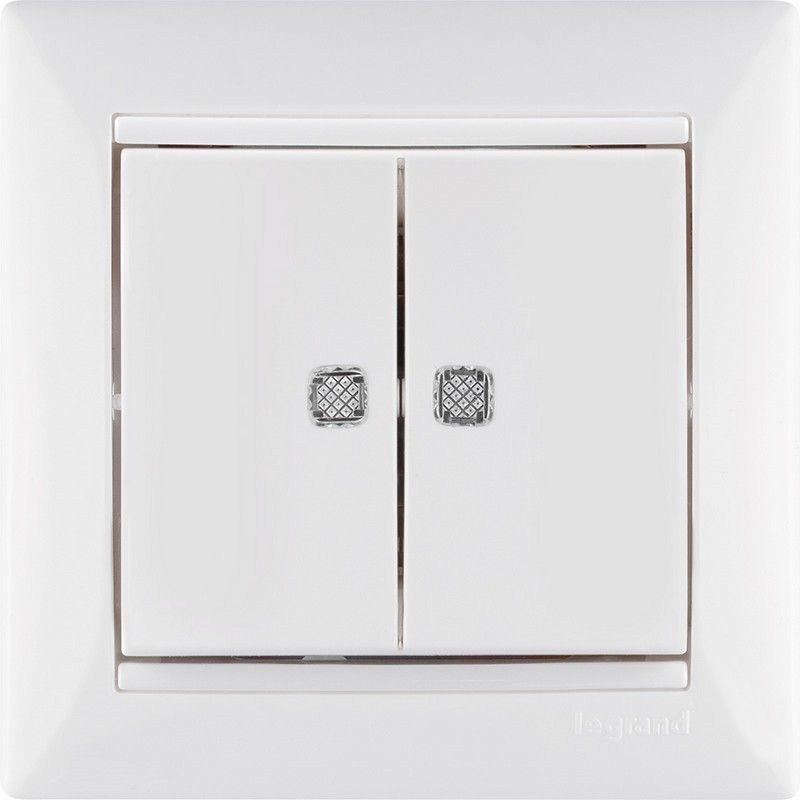 Выключатель Legrand Valena белый 2-х клавишный с подсветкой 774428 по цене 1 287 руб. с фотографией и техническими характеристиками. Для покупки товара нажмите кнопку "Купить" и перейдите в корзину или позвоните по телефону 8 (495) 585 32 60 или 8 (800) 222 23 53.