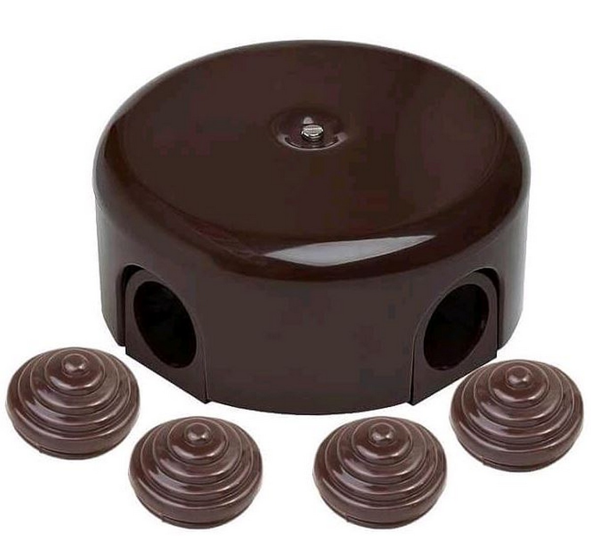 Распредельная коробка BIRONI Ришелье выполнена из прочного коричневого пластика и имеет диаметр 90 мм. Этот аксессуар идеально подходит для организации электропроводки в различных помещениях. Коробка отличается высокой устойчивостью к механическим повреждениям и воздействию влаги, что обеспечивает долговечность её использования. Легкий монтаж и доступ к проводам делают установку простой и быстрой. Эстетичный дизайн в коричневом цвете позволяет легко вписать коробку в интерьер. Продукт соответствует современным стандартам безопасности, что делает его надежным выбором для любых электрических работ.