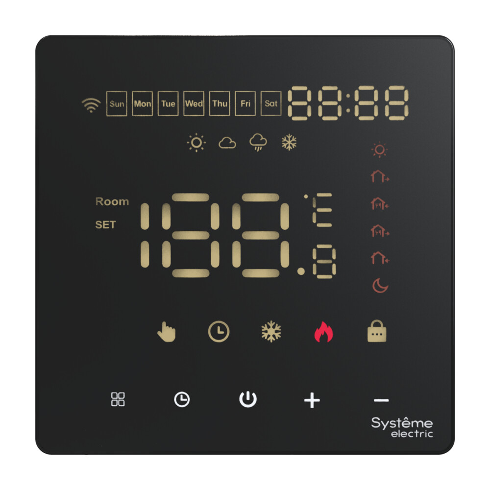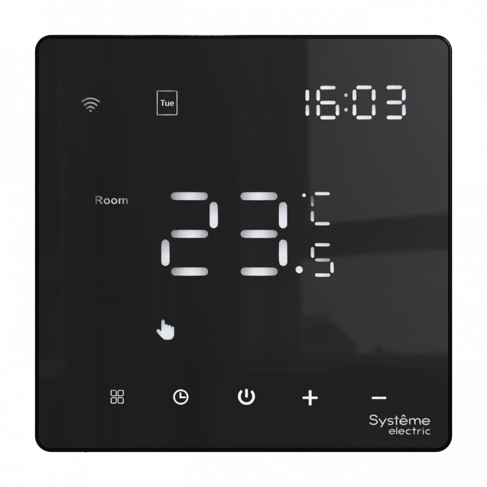 Термостат программируемый Systeme Electric ArtGallery Черный с Wi-Fi для теплого пола GAL001038 по цене 8 134 руб. с фотографией и техническими характеристиками. Для покупки товара нажмите кнопку "Купить" и перейдите в корзину или позвоните по телефону 8 (495) 585 32 60 или 8 (800) 222 23 53.