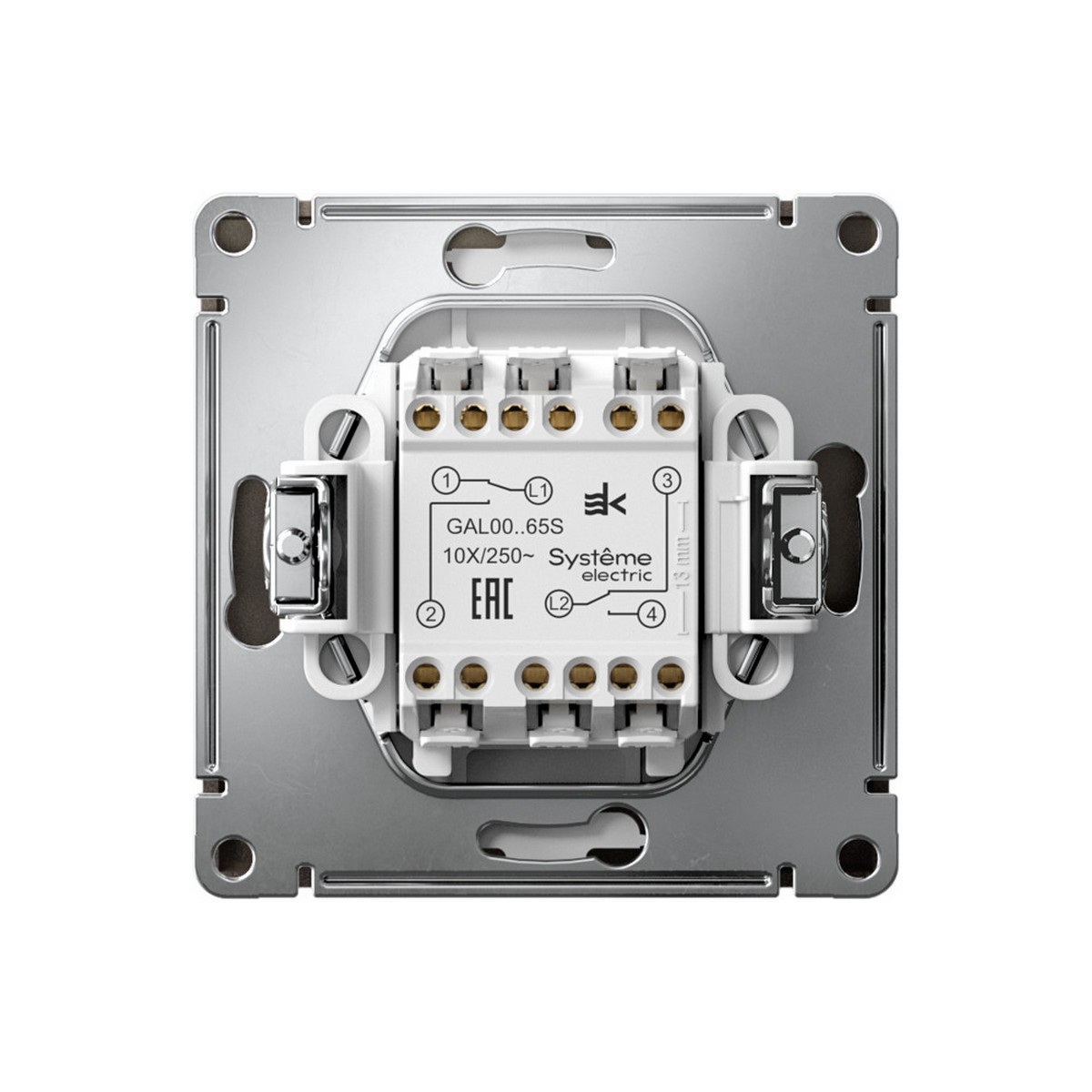 Механизм с быстрозажимными клеммами Systeme Electric серии ArtGallery в цвете мокко переключателя 2-клавишного подходит для сетей 250 В, на ток 10 А.С помощью новых быстрозажимных клемм монтаж стал быстрее. Для подключения не требуется отвертка. Классическое цветовое решение станет изюминкой любого интерьера. Лицевые детали из качественного ABS-пластика, устойчивого к царапинам и УФ-излучению. Лучший промышленный дизайн (по итогам премии МИНПРОМТОРГ 2023).