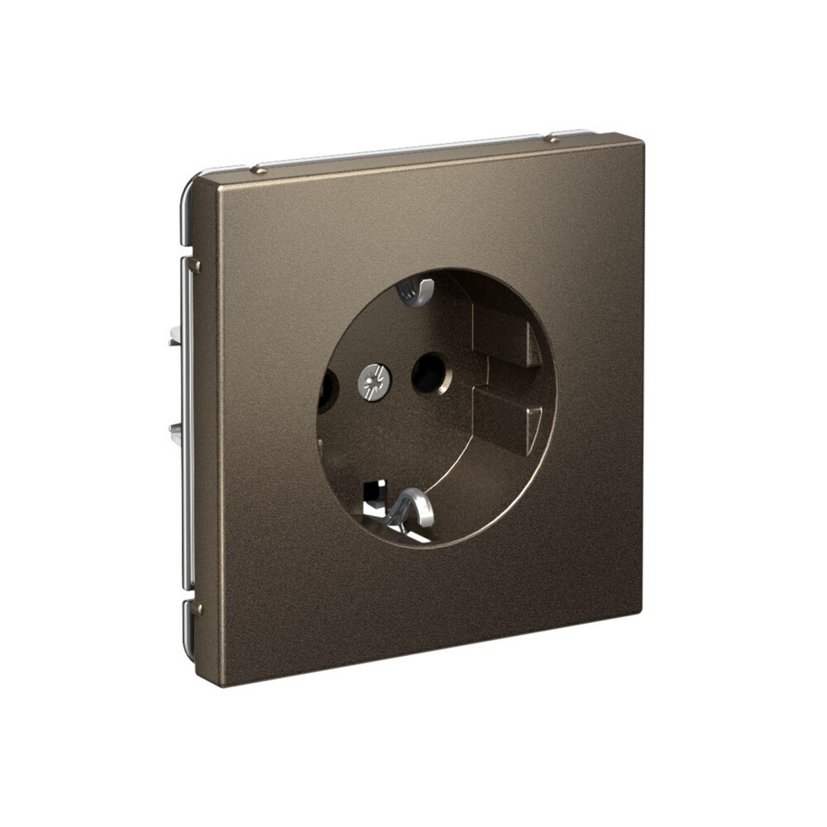 Механизм с быстрозажимными клеммами Systeme Electric серии ArtGallery в цвете мокко розетки одинарной с заземлением и без шторок подходит для сетей 250 В, на ток 16 А.